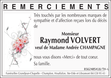 Décédé à Tenneville (6970) le mercredi 20 avril 2016 à l'âge de 94 ans