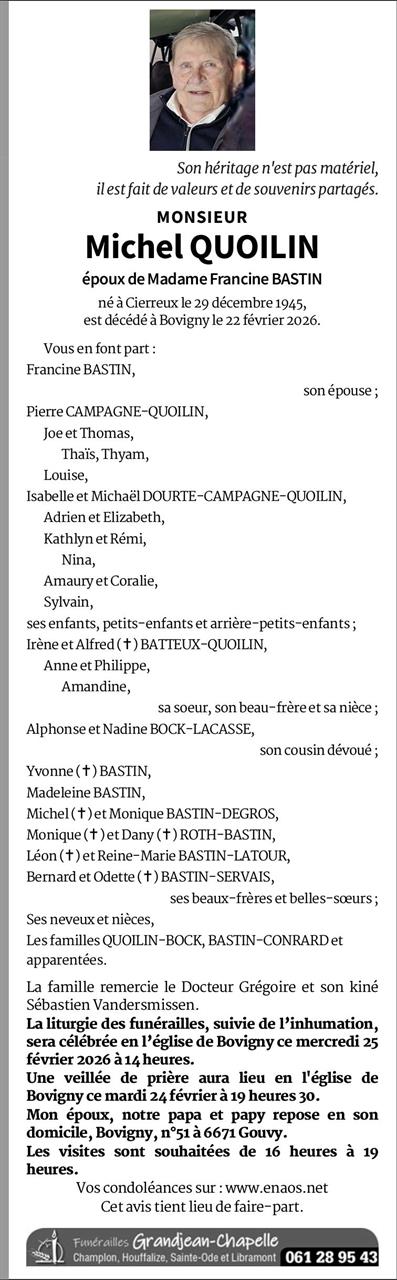 Décédé à Bovigny (6671) le dimanche 22 février 2026 à l'âge de 80 ans