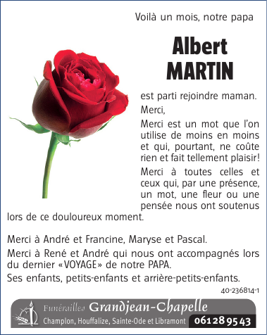Décédé à Libramont (6800) le vendredi 26 février 2016 à l'âge de 88 ans