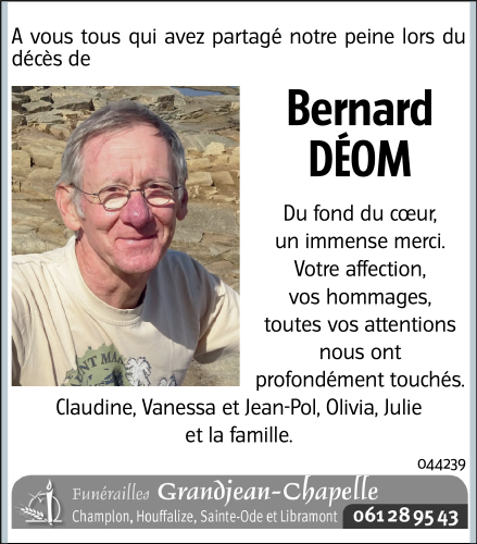 Décédé à Mont-Godinne (5530) le lundi 6 février 2023 à l'âge de 70 ans