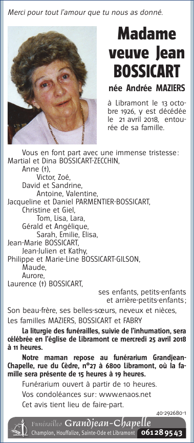 Madame Andrée BOSSICART née MAZIERS