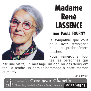 Veuve de Monsieur René LASSENCE