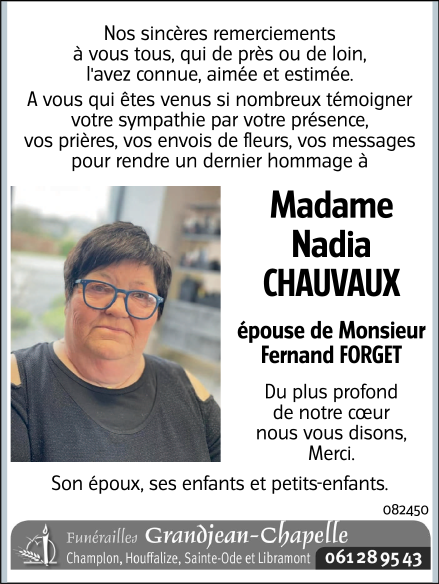 Décédée à Sberchamps (6800) le jeudi 2 janvier 2025 à l'âge de 73 ans