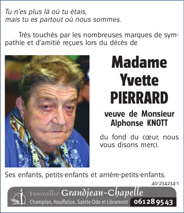 Décédée à Remeaux (6800) le lundi 4 janvier 2016 à l'âge de 83 ans