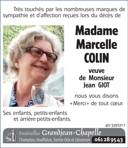 Décédée à Libramont (6800) le lundi 27 avril 2020 à l'âge de 87 ans
