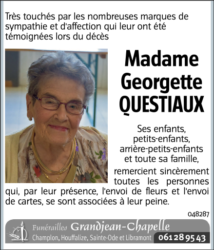 Décédée à Bastogne (6600) le samedi 22 avril 2023 à l'âge de 91 ans