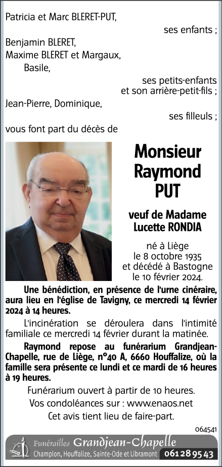Décédé à Bastogne (6600) le samedi 10 février 2024 à l'âge de 88 ans