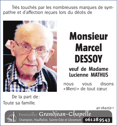 Décédé à Libramont (6800) le vendredi 15 décembre 2017 à l'âge de 92 ans