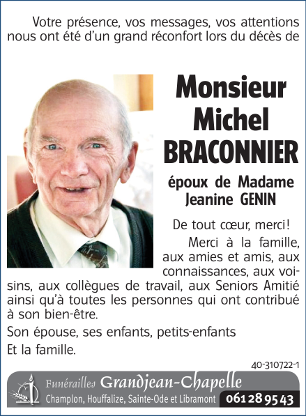 Monsieur Michel BRACONNIER époux de Jeanine GENIN