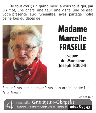 Décédée à Libramont (6800) le mardi 2 janvier 2018 à l'âge de 89 ans