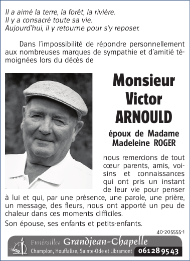Décédé à Libramont (6800) le mardi 20 janvier 2015 à l'âge de 84 ans