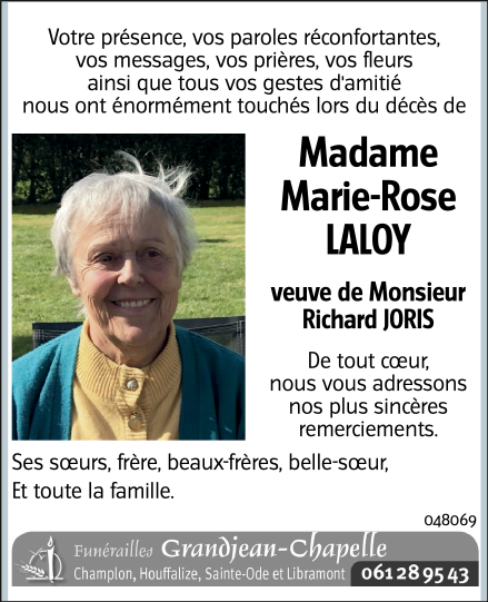 Décédée à Libramont (6800) le mercredi 19 avril 2023 à l'âge de 68 ans