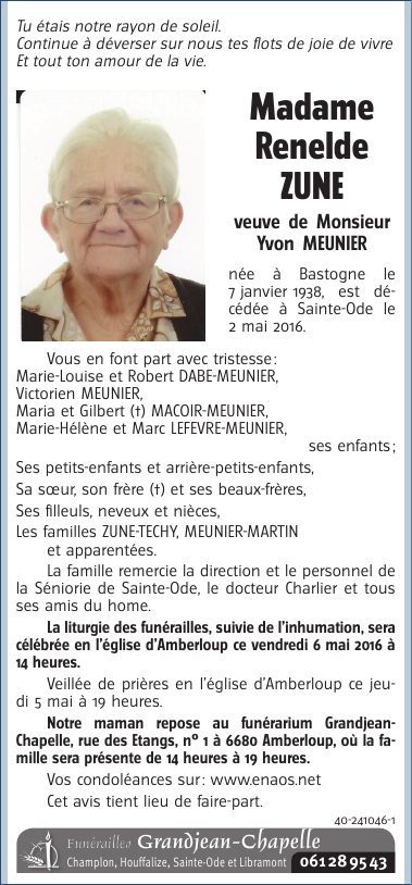 Madame Renelde ZUNE