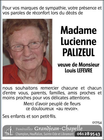 Décédée à Bastogne (6600) le jeudi 9 décembre 2021 à l'âge de 84 ans