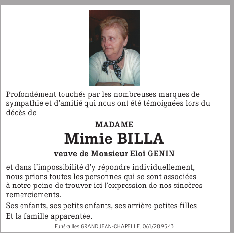 Née à Tenneville (6970) le samedi 14 janvier 1933
