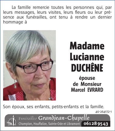 Décédée à Recogne (6800) le lundi 16 janvier 2017 à l'âge de 72 ans