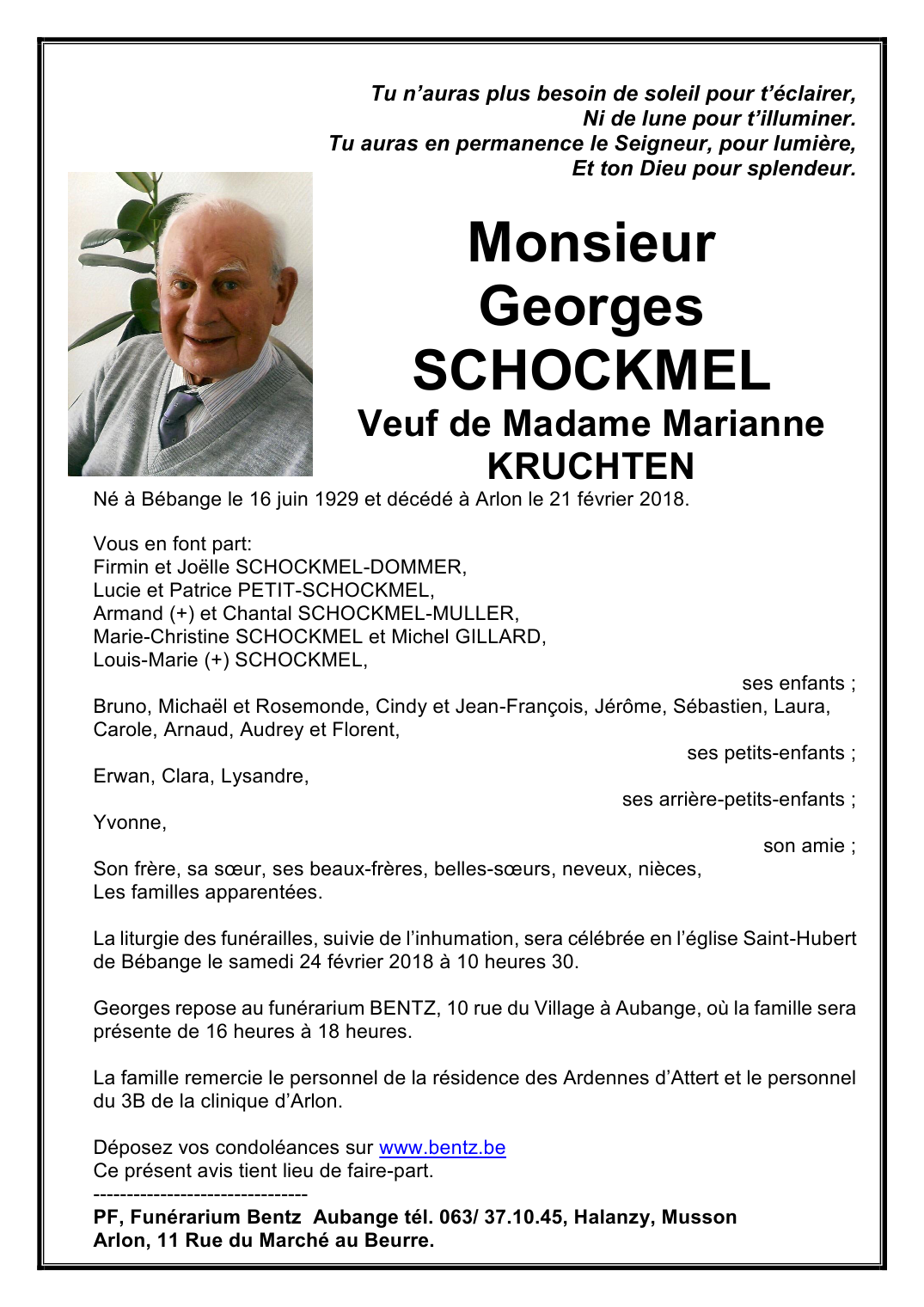 Décédé à Arlon (6700) le mercredi 21 février 2018 à l'âge de 88 ans