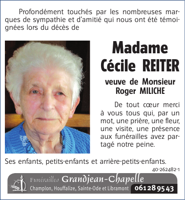 Décédée à Bastogne (6600) le jeudi 26 janvier 2017 à l'âge de 93 ans