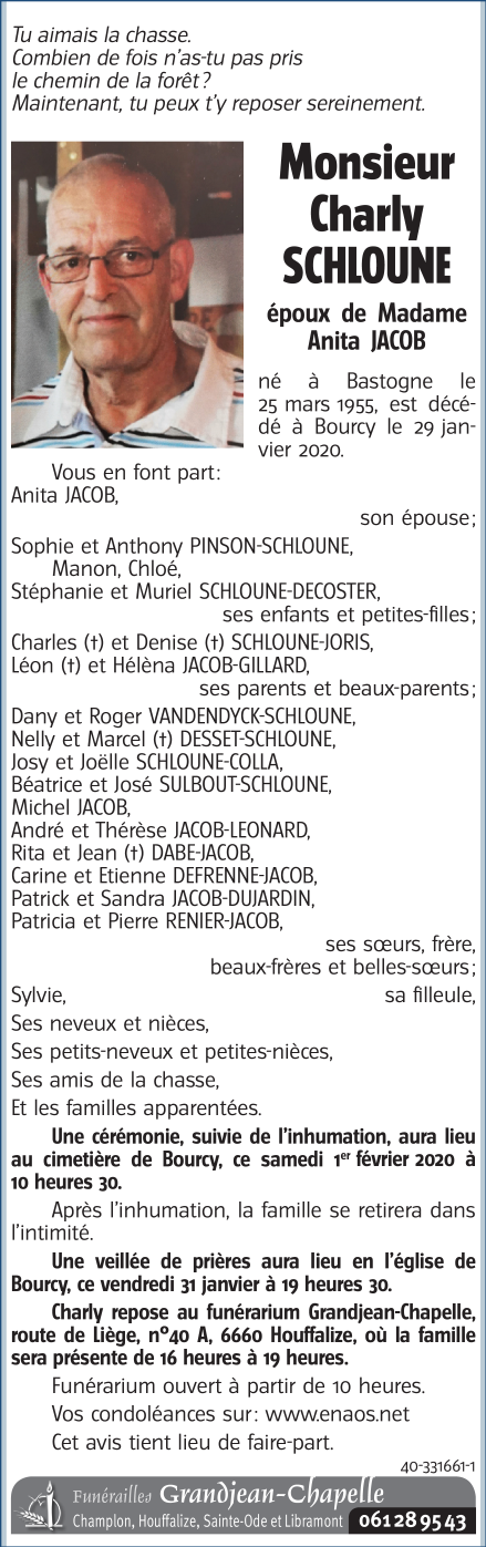 Né à Bastogne (6600) le vendredi 25 mars 1955
