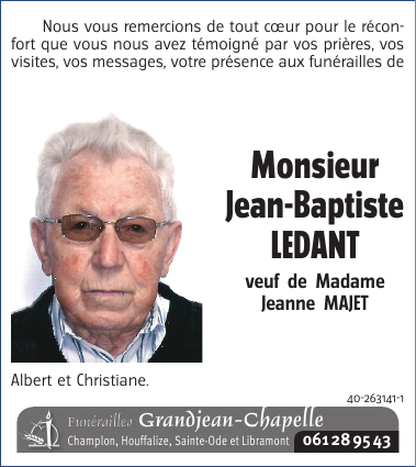 Décédé à Libramont (6800) le samedi 11 février 2017 à l'âge de 95 ans
