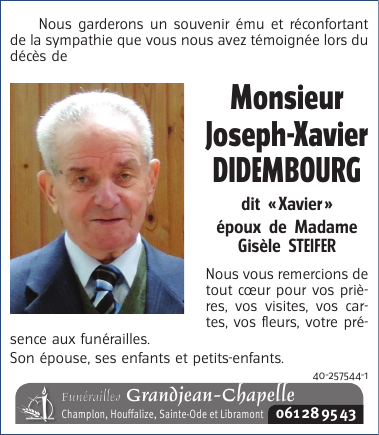 Décédé à Libramont (6800) le mercredi 30 novembre 2016 à l'âge de 88 ans