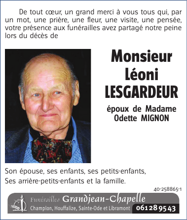 Décédé à Ourt (6800) le vendredi 23 décembre 2016 à l'âge de 86 ans