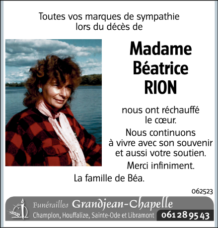 Décédée à Libramont (6800) le mardi 26 décembre 2023 à l'âge de 79 ans
