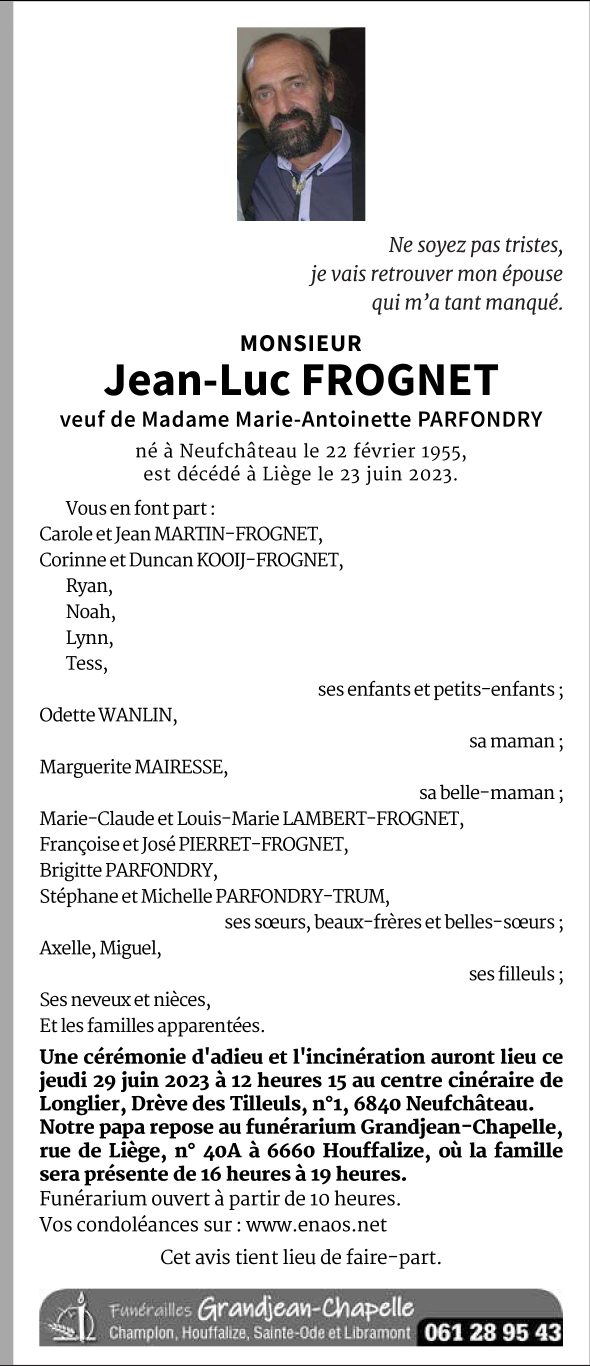 Né à Neufchâteau (6840) le mardi 22 février 1955