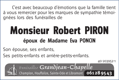 Décédé à Bastogne (6600) le mardi 30 décembre 2014 à l'âge de 85 ans