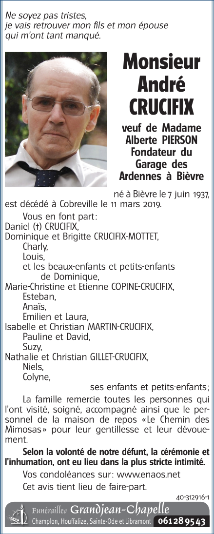 Né à Bievre (5555) le lundi 7 juin 1937