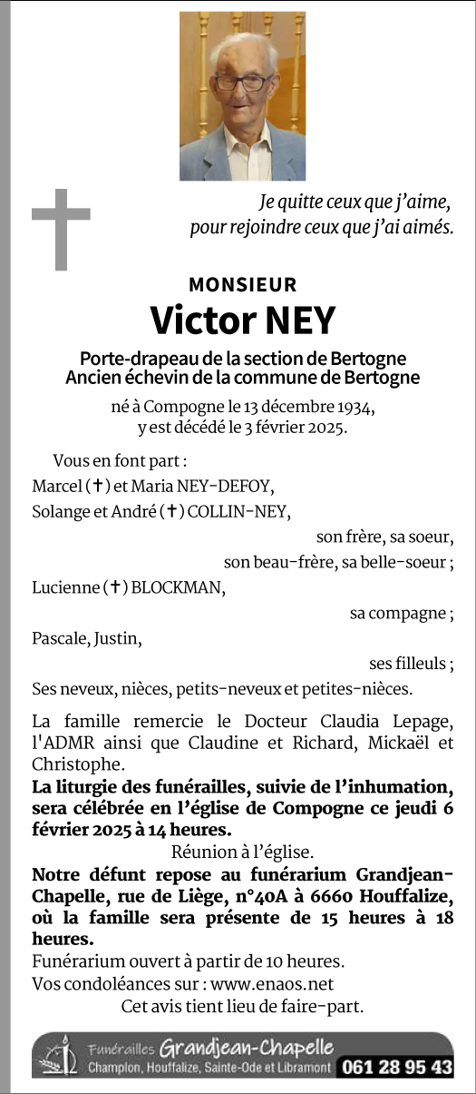Décédé à Compogne (6687) le lundi 3 février 2025 à l'âge de 90 ans